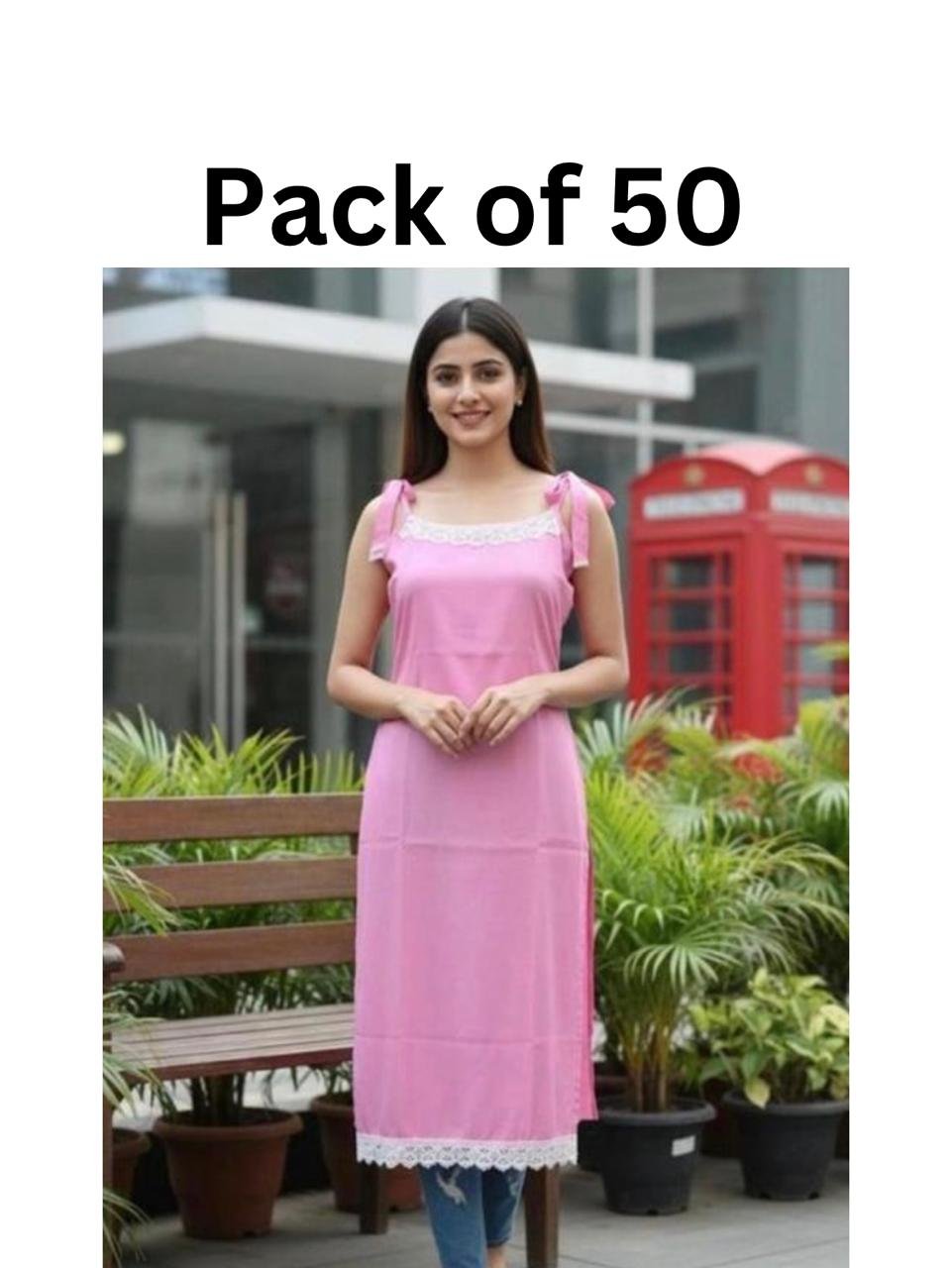 Be the first to review “Pack of 50 – Women’s Sleeveless Pink Lace Kurti”